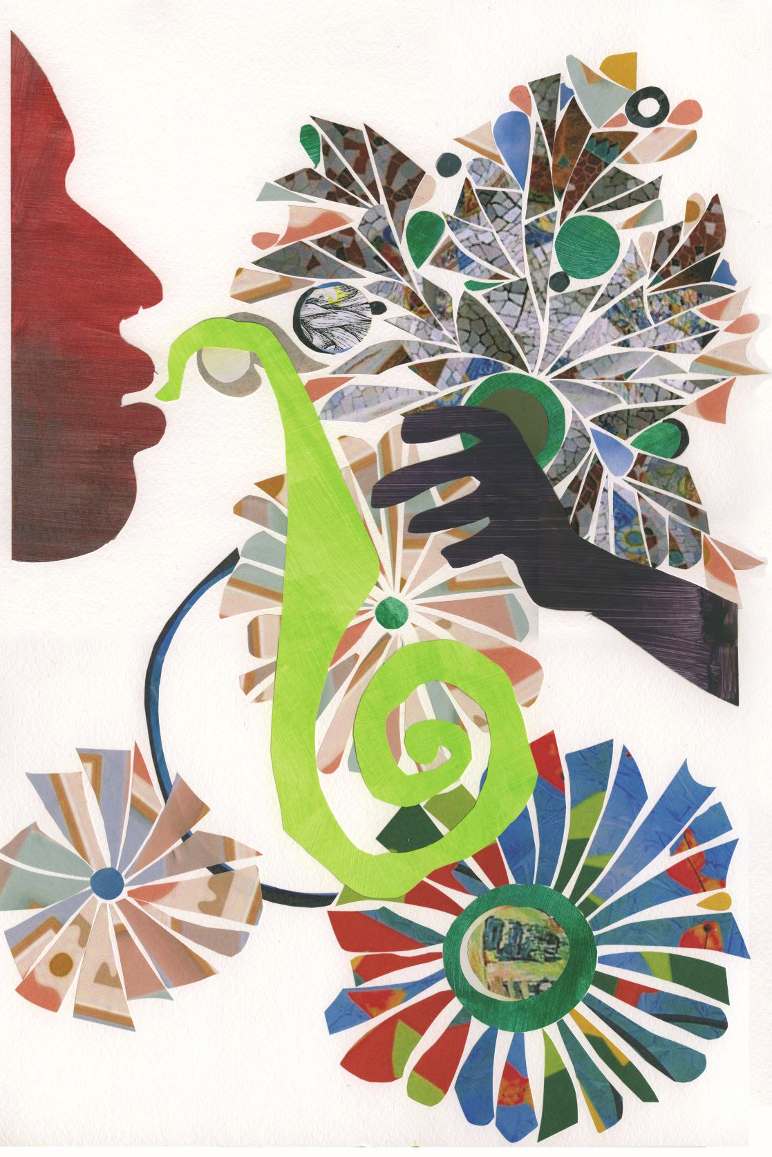 The lockdown has been a year of collage creations. During the Covid I started to cut birds, fling horses, dancers, and all kinds of flowers. I wanted to express music dance movement and freedom.