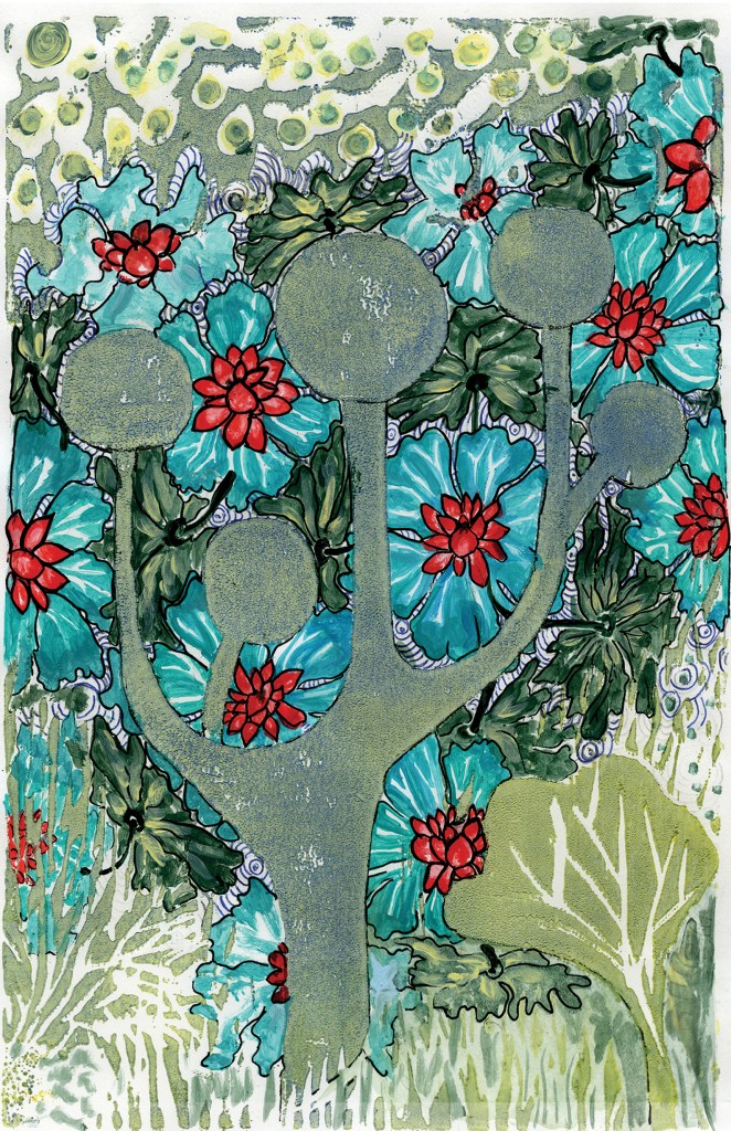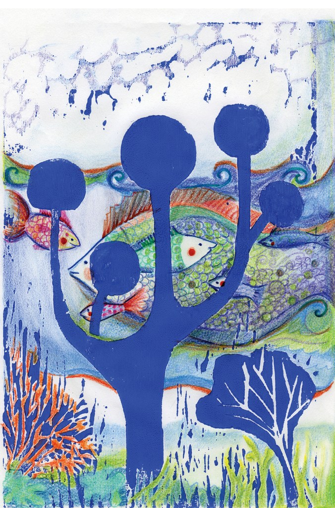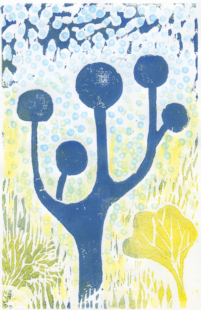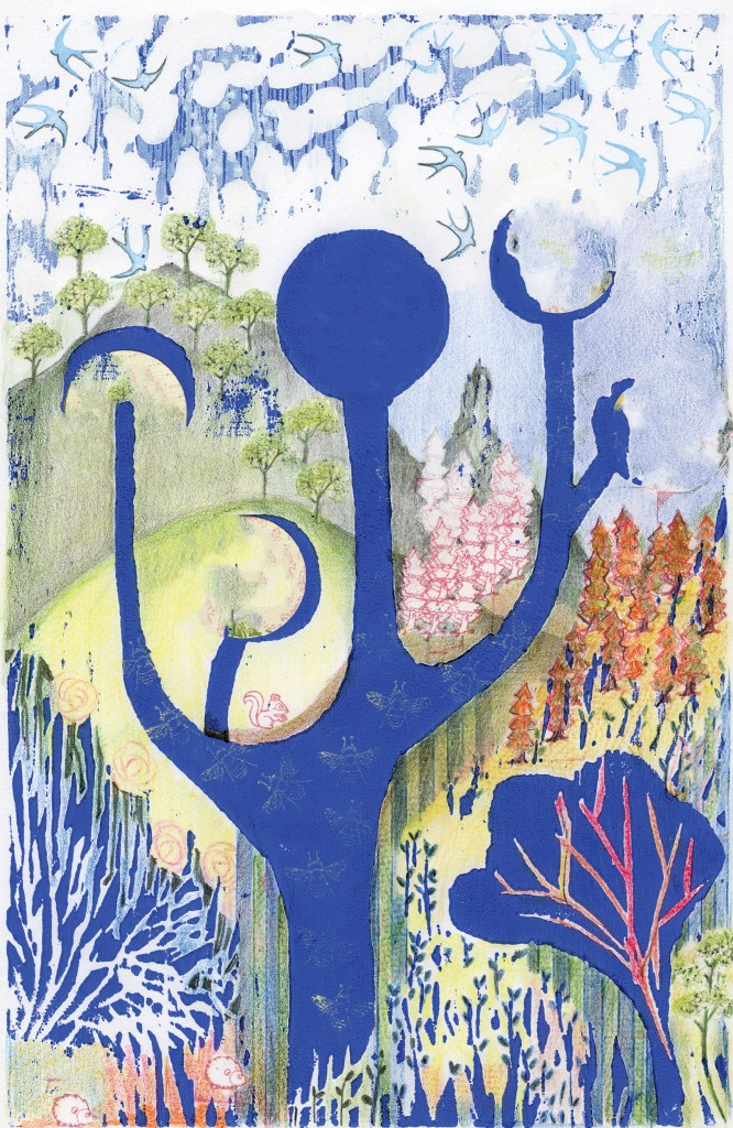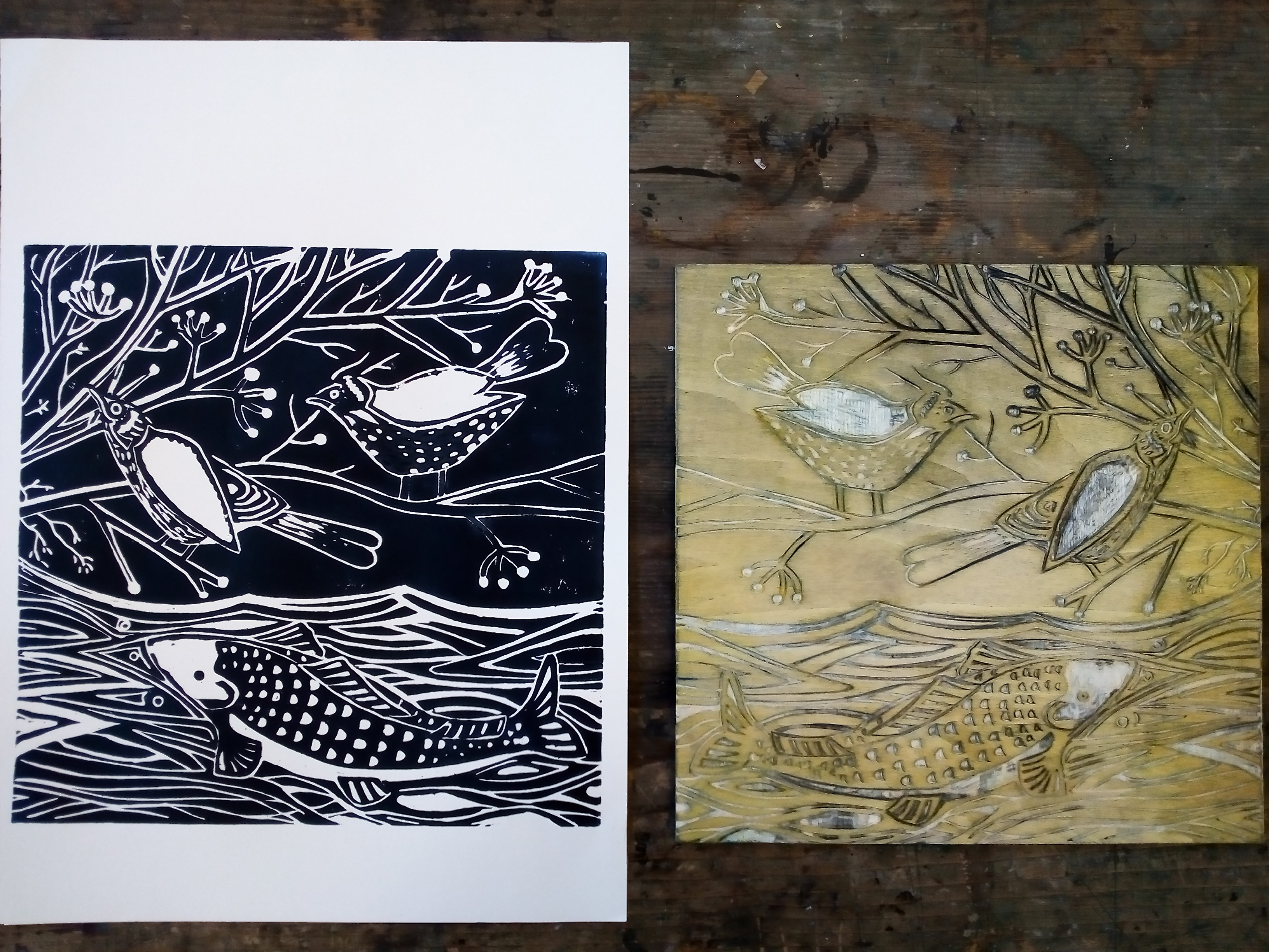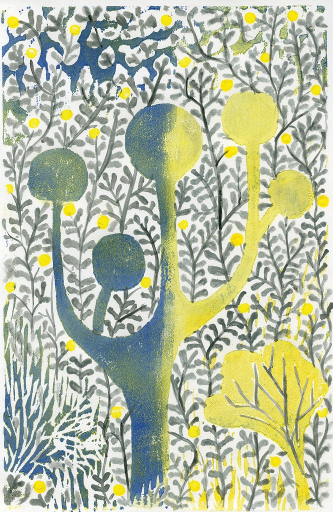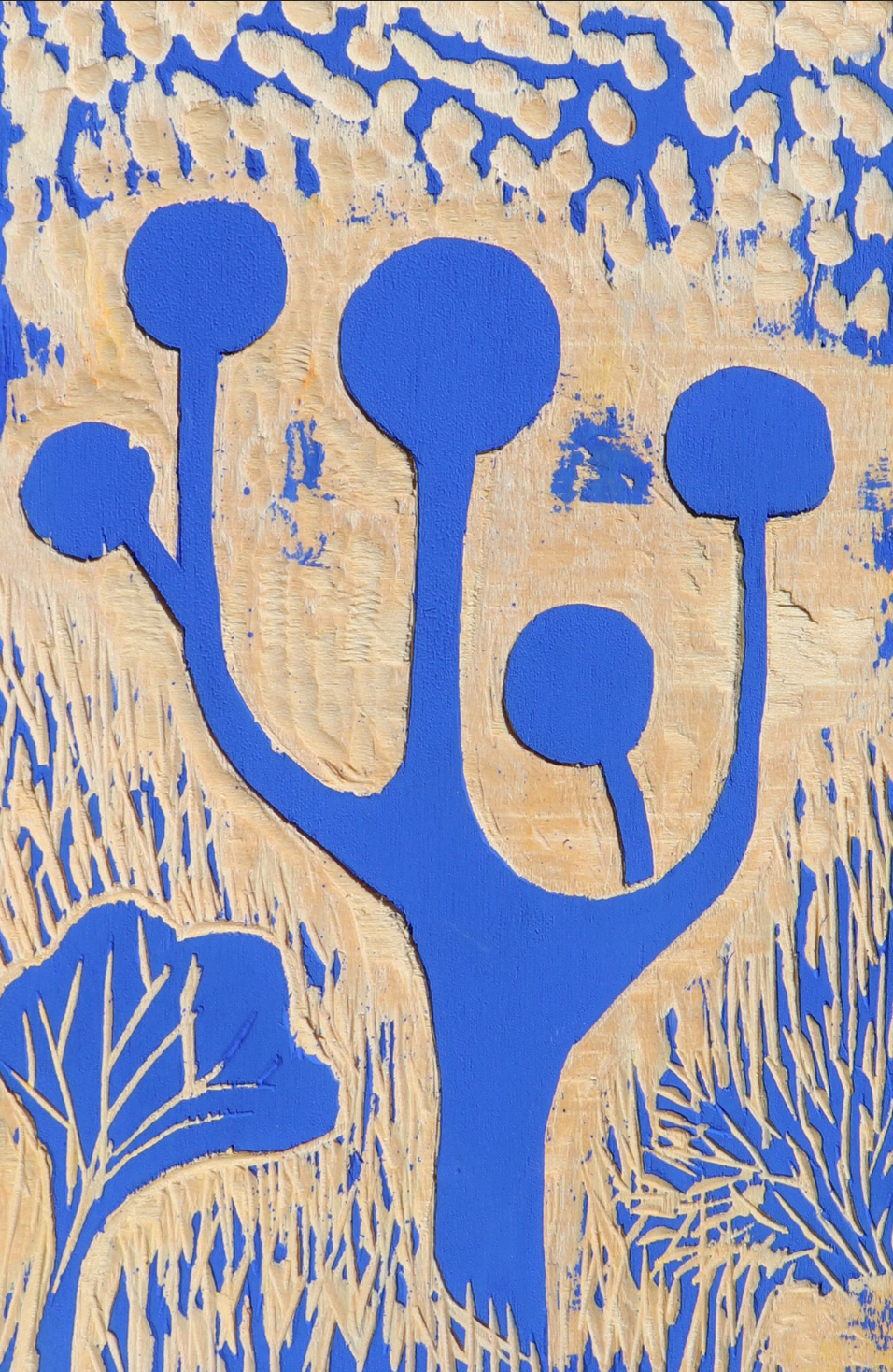 Wood engraving + mixed media. Just as we use a tuning fork for sounds, here I use the morphology of the tuning fork to refine the visual language by playing with the possibilities of the laws of gestalt.