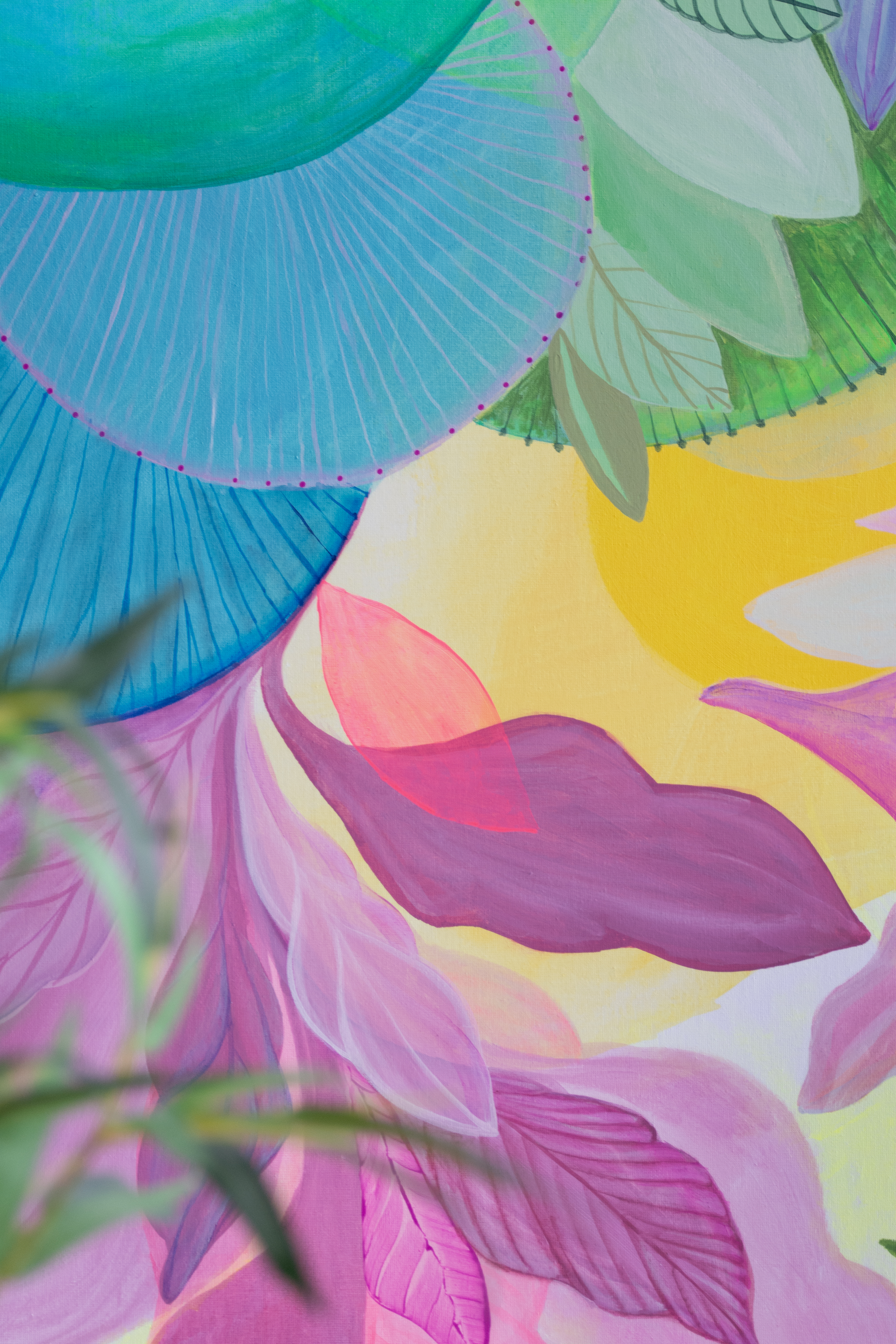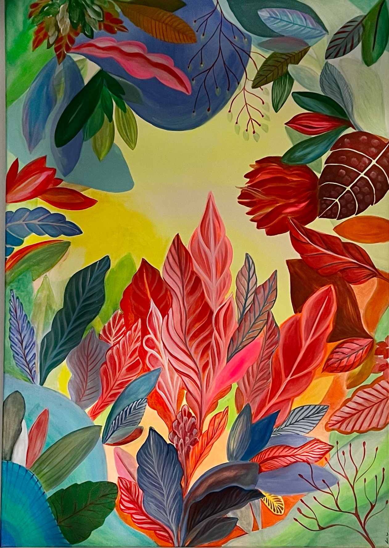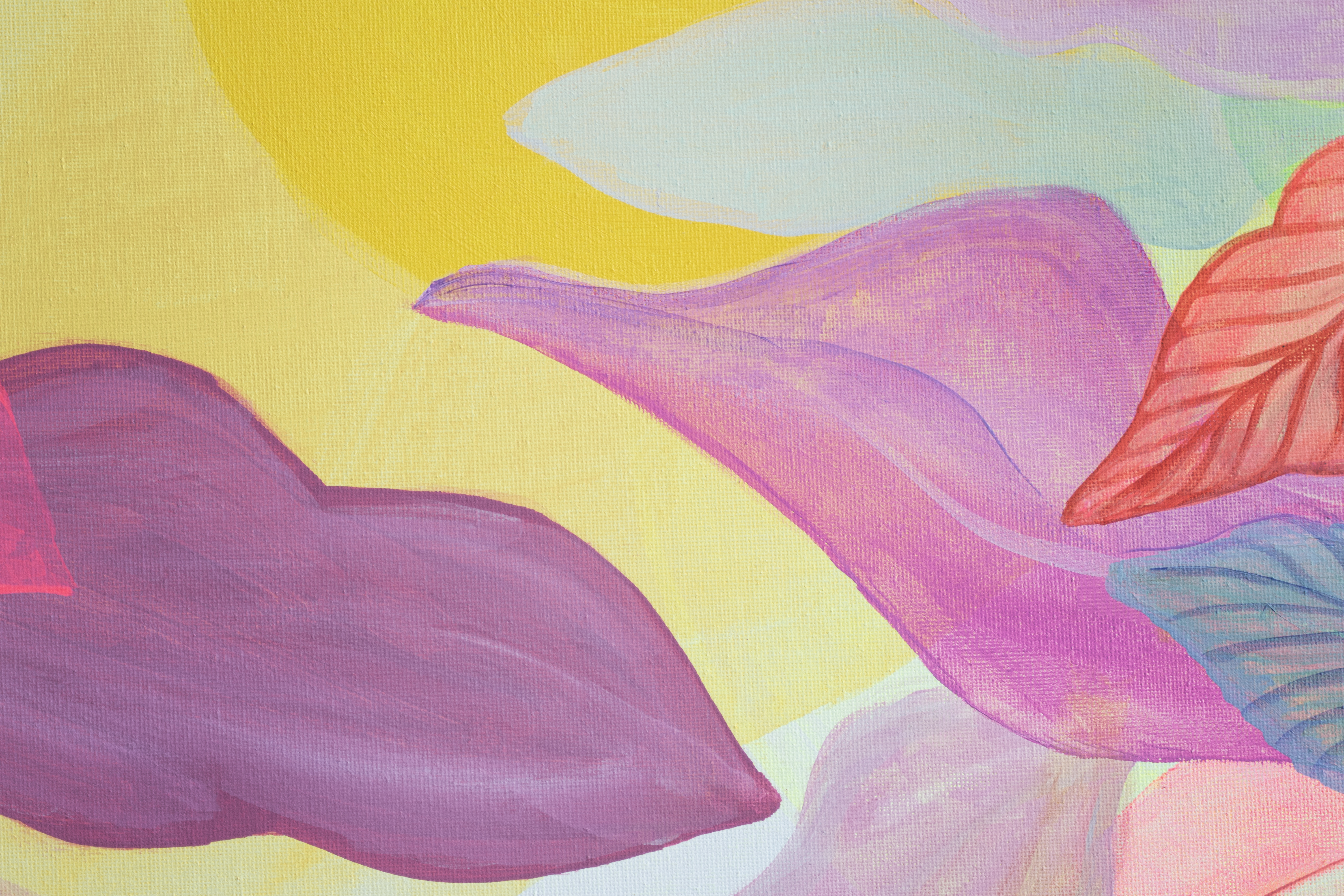 This series of leaves that construct oneiric rhythms is inspired by automatic painting. The background is made with different colours creating a chromatic gesture that guides the whole composition. Exhibited at the International Women’s Art Exhibition of Paintings & Prints organised by ArtFort Chandigarh (India), Verman Cultural Celebrations, Jammu (India), Aswara, Kuala Lumpur (Malaysia) and International Island Country Artists Group (Turkey) in collaboration with Kangra Art Museum Dharamshala (H.P.) (India). 13 to 15 June 2023 at Museum of Kangra Art, Dharamshala (H.P.) India