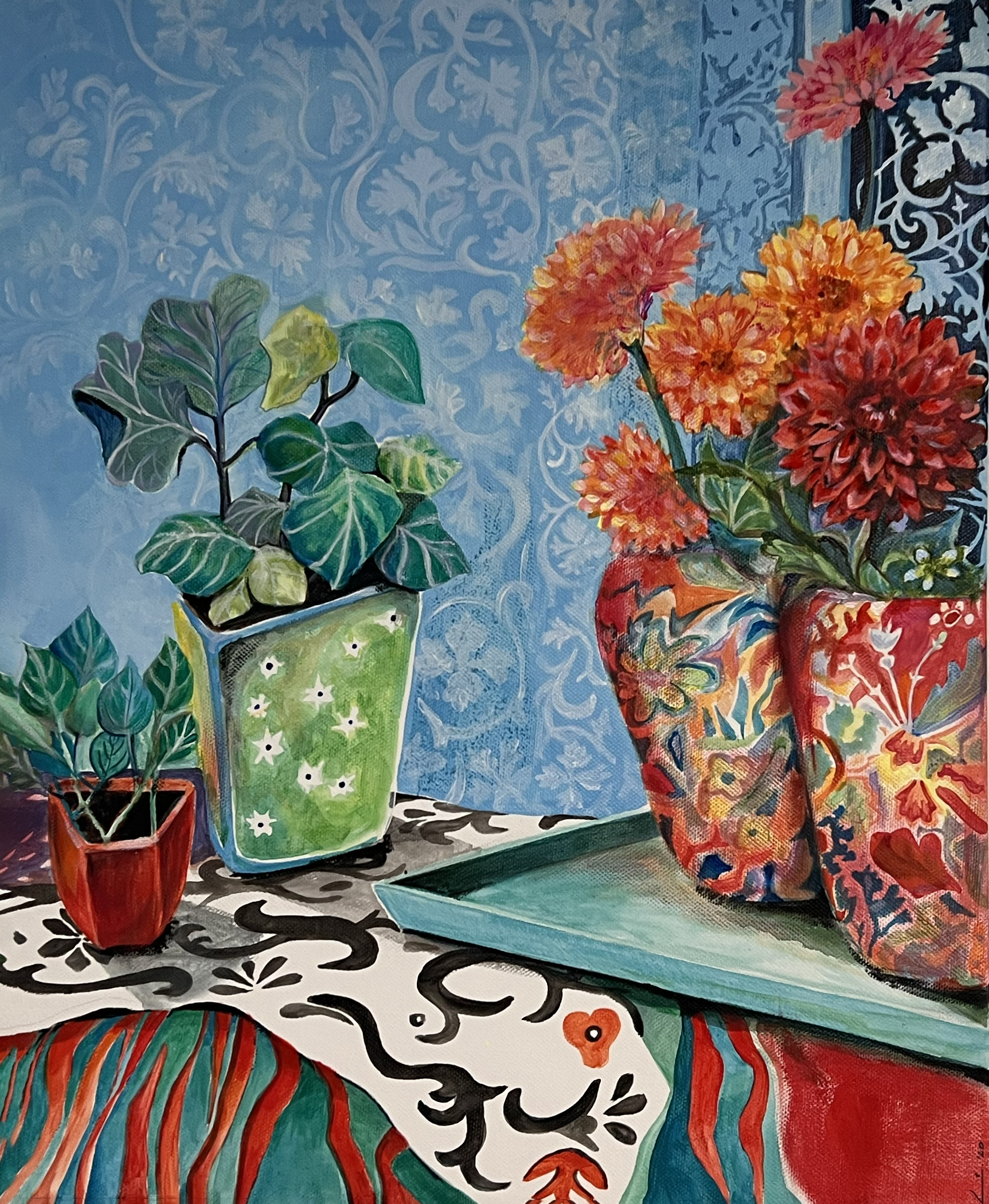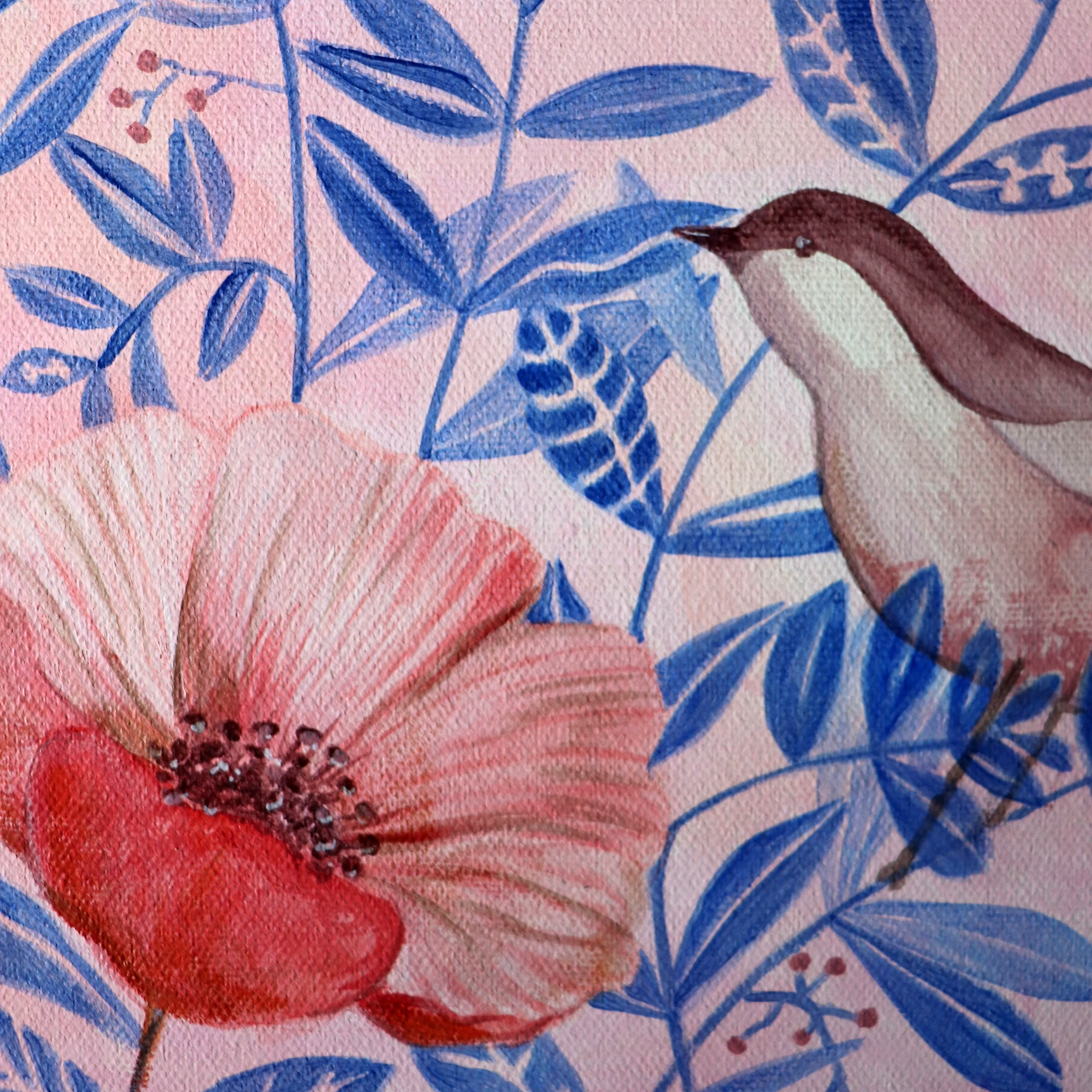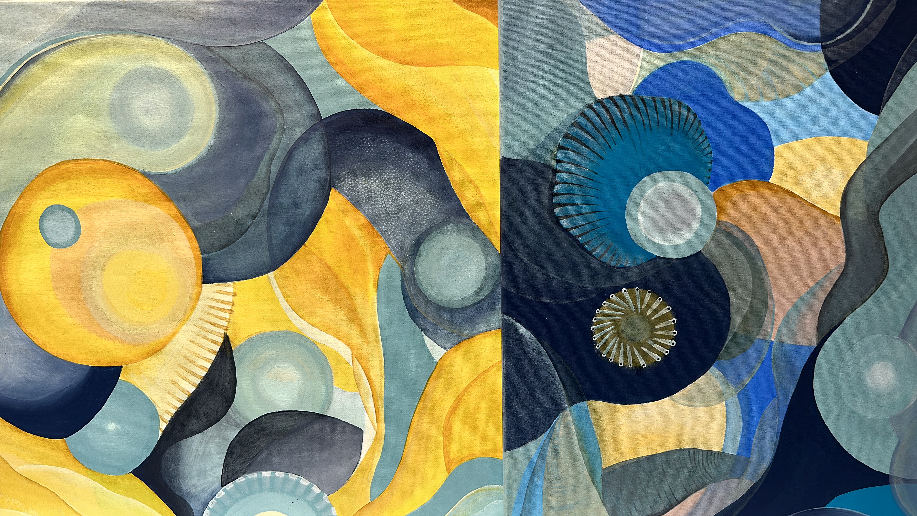 This series of leaves that construct oneiric rhythms is inspired by automatic painting. The background is made with different colours creating a chromatic gesture that guides the whole composition. Exhibited at the International Women’s Art Exhibition of Paintings & Prints organised by ArtFort Chandigarh (India), Verman Cultural Celebrations, Jammu (India), Aswara, Kuala Lumpur (Malaysia) and International Island Country Artists Group (Turkey) in collaboration with Kangra Art Museum Dharamshala (H.P.) (India). 13 to 15 June 2023 at Museum of Kangra Art, Dharamshala (H.P.) India