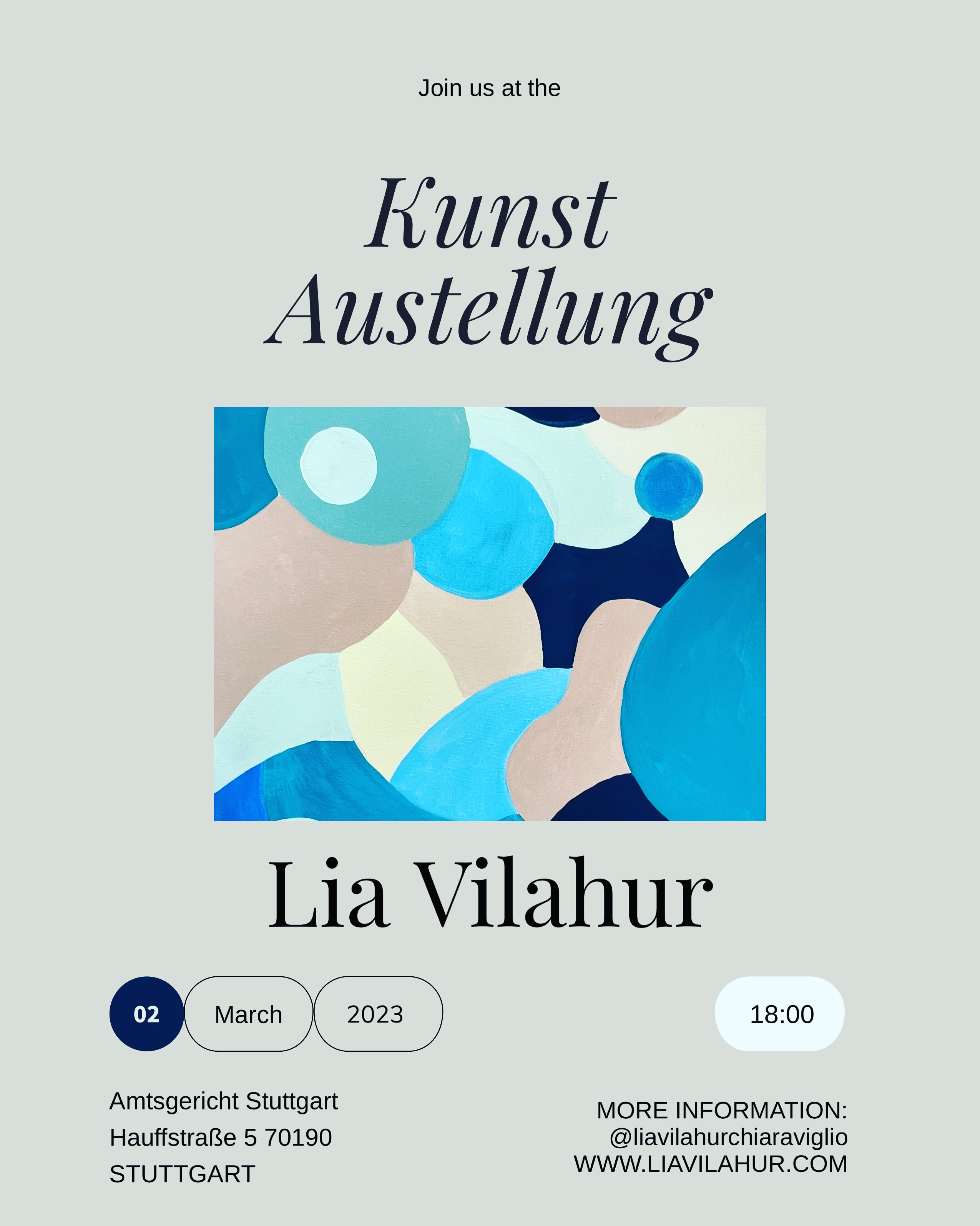 Solo Exhibition. 2023.“Einzelausstellung ”- Solo Exhibition. 03.2023 bis 04.2023 – Amtsgericht Stuttgart. Hauffstraße, 5. 70190. Deutschland.