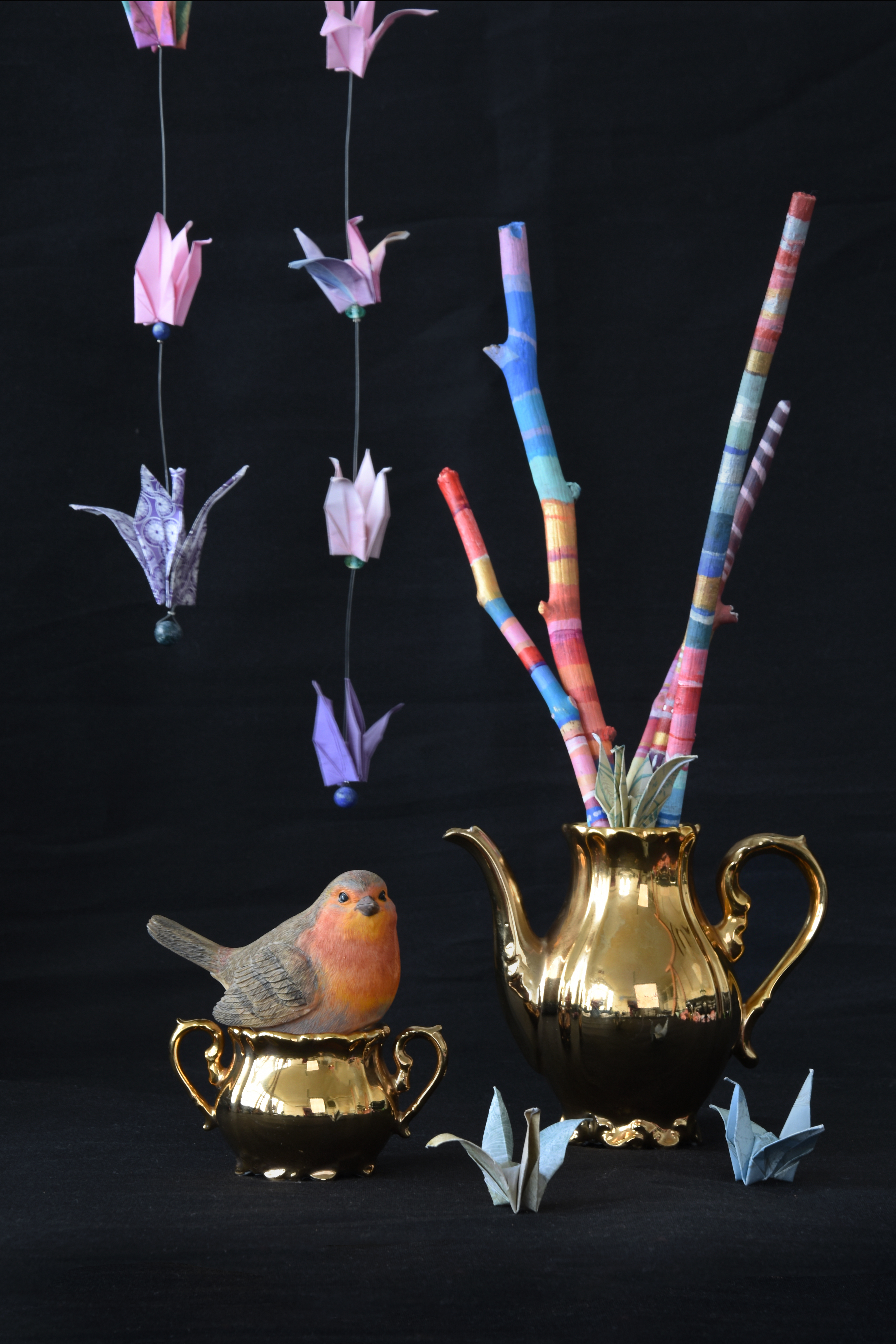 Craftsmanship, the art of forgetting time and exercising patience.Thinking with one’s hands. My multiple folded bird-shaped papers are a tribute to the ancient Japanese tradition of origami.
