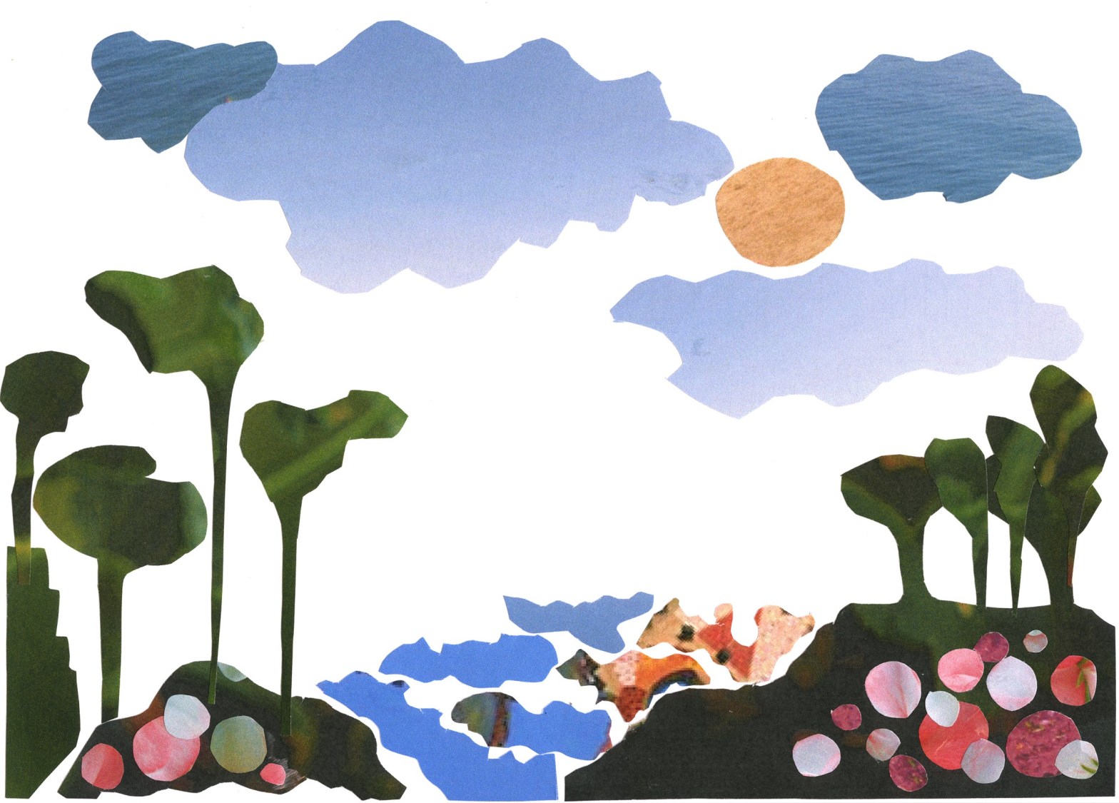 The sun has the color of the earth and pine trees are like small clouds connected to the floor by a very thin line. The sea, a calm river, and the sand, full of rocks and shadows, Nature taste of sweet pink roses. The air is dry, clean, and calm.
