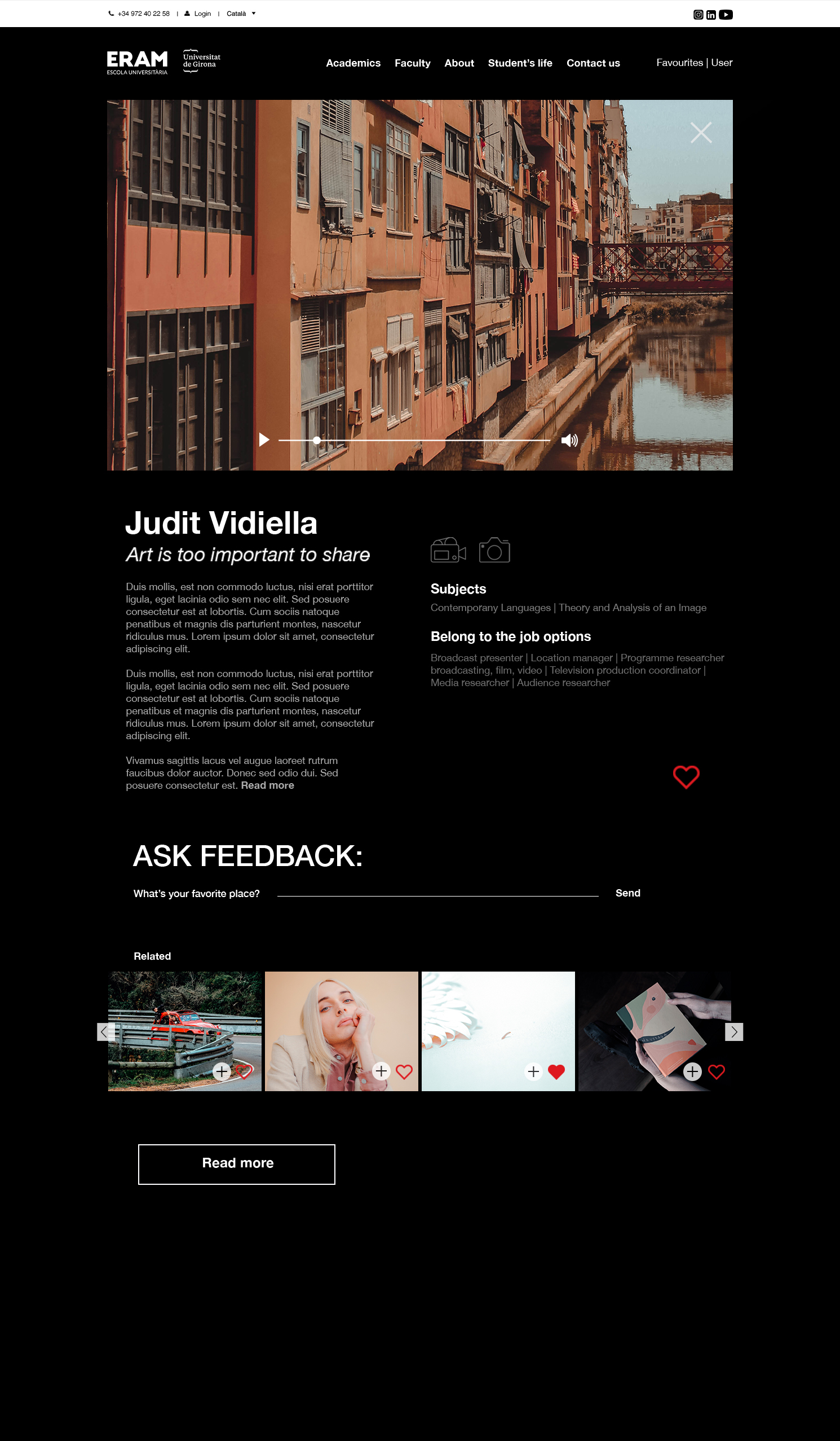 Art direction LIa vilahur. Design Jordi Caralt. Ilustration Building : Lia vilahur. ( ERAM webpage for international students). Portraits in colaboration with Eram Design Team.